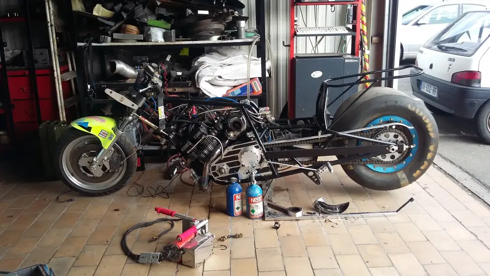 Le garage Horizon G.P.L est reconnu pour son expertise en véhicules de haute performance, incluant des interventions sur des machines extrêmes telles que le dragster moto Suzuki Turbo Nitrous 600cv et les Funny Bikes. Le dragster moto, avec ses 600 chevaux, reçoit des réglages précis pour optimiser sa performance, tandis que les Funny Bikes bénéficient de modifications pour maximiser la puissance et l'efficacité énergétique. Horizon G.P.L offre un savoir-faire unique et des équipements de pointe pour garantir des performances optimales et une sécurité maximale, faisant de lui un leader dans le domaine des véhicules de compétition !